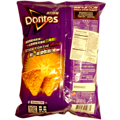 DORITOS Garlic Beef Fillet Flavor combines the hearty taste of grilled beef fillet with the rich aroma of roasted garlic. Every crunchy corn chip is generously seasoned, delivering a mouthful of savory, smoky, and garlicky goodness in each bite. The meaty flavor is perfectly balanced with a hint of spice, creating a robust snacking experience. This 70g bag is great for sharing during gatherings, enjoying during game nights, or indulging in on your own. It’s a premium flavor twist that satisfies both meat lovers and garlic enthusiasts, turning a simple snack into a gourmet-inspired experience.CHAR(10)Asian-inspired Doritos flavor featuring robust garlic and savory beef notes. The seasoning creates a meaty umami taste with aromatic roasted garlic that coats each crunchy corn chip.