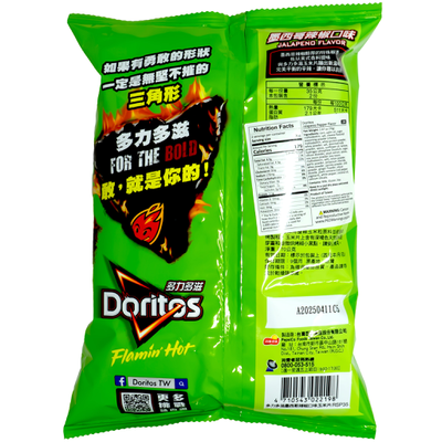 DORITOS Mexican Jalapeno Flavor takes bold snacking to new heights with its fiery and zesty kick. Each triangular corn chip is coated with a spicy jalapeno seasoning inspired by authentic Mexican flavors. The perfect balance of heat and tanginess makes every bite a thrill, while the signature Doritos crunch keeps it exciting until the last chip. Whether enjoyed straight from the bag or paired with dips like salsa or guacamole, this 70g pack is ideal for spice lovers. It’s a flavorful, crunchy snack that delivers the heat you crave and the bold taste you expect from Doritos.CHAR(10)Bold triangular corn chips with the fiery kick of jalapeño peppers. The seasoning delivers an authentic Mexican heat profile with tangy lime undertones and a lingering spice.